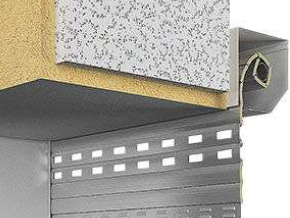 Короб роллетных ворот располагается в нише проема передней частью внутрь. При таком монтаже опущенные роллетные ворота сливаются с фасадом, так как находятся с ним на одном уровне.