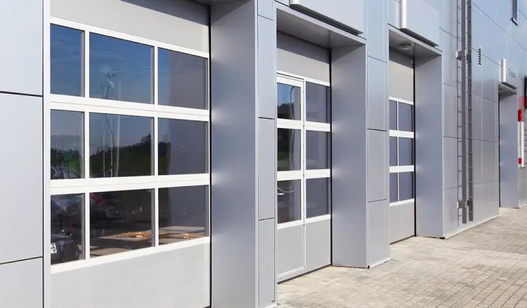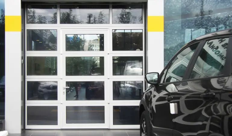 Стильные ворота для автосалонов, СТО и других имиджевых объектов. Помогают экономить на освещении в дневное время.